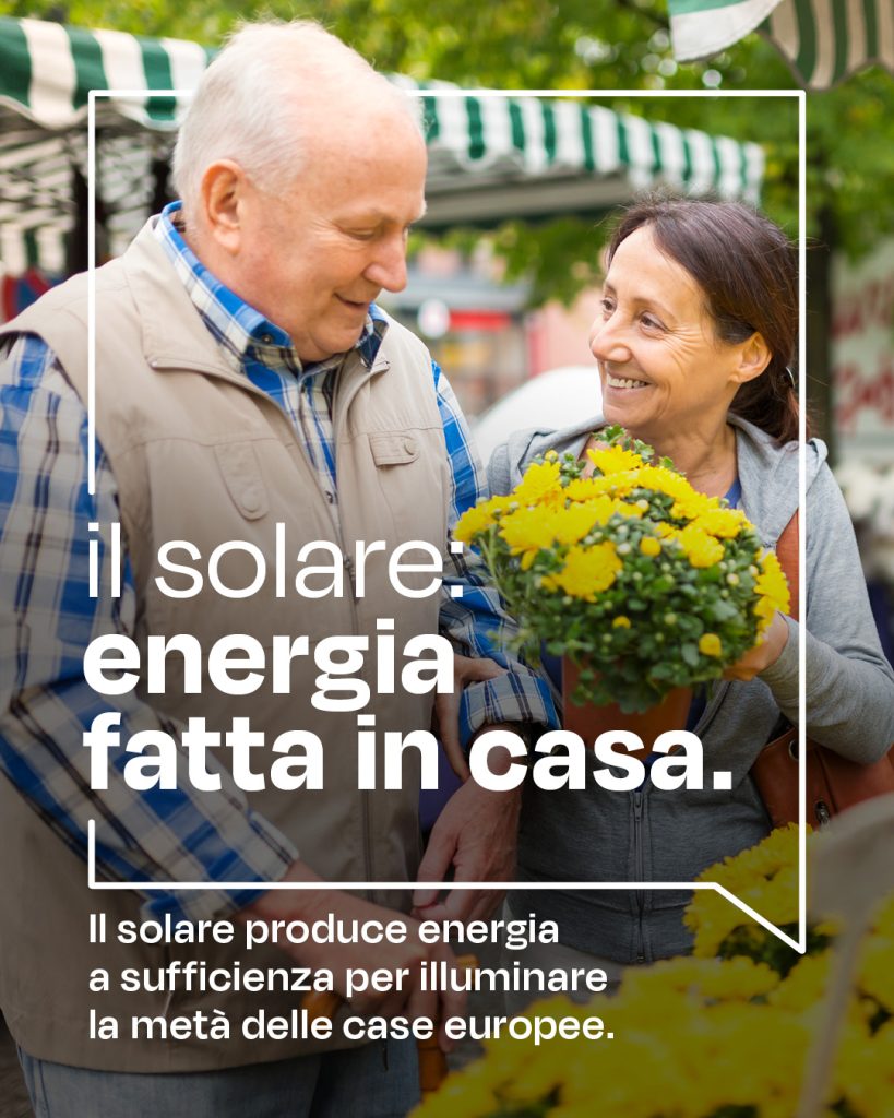 L’energia solare soddisfa il fabbisogno energetico del 50% delle famiglie europee. Insieme allo stoccaggio di energia, riduce i costi in della bolletta e, sostiene le comunità, gli agricoltori e le economie locali e nazionali.